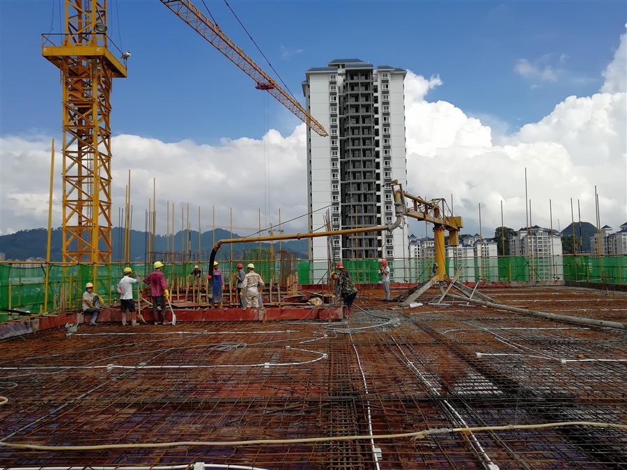 該工程于去年12月全面開工,經(jīng)過參建人員9個月的共同努力,目前主樓主體結(jié)構(gòu)實現(xiàn)封頂,項目將全面進入砌體施工階段。