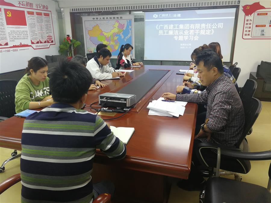 近日,桂海分公司召開(kāi)員工會(huì)議,組織學(xué)習(xí)《廣西建工集團(tuán)有限責(zé)任公司員工廉潔從業(yè)若干規(guī)定》(以下簡(jiǎn)稱《規(guī)定》)。